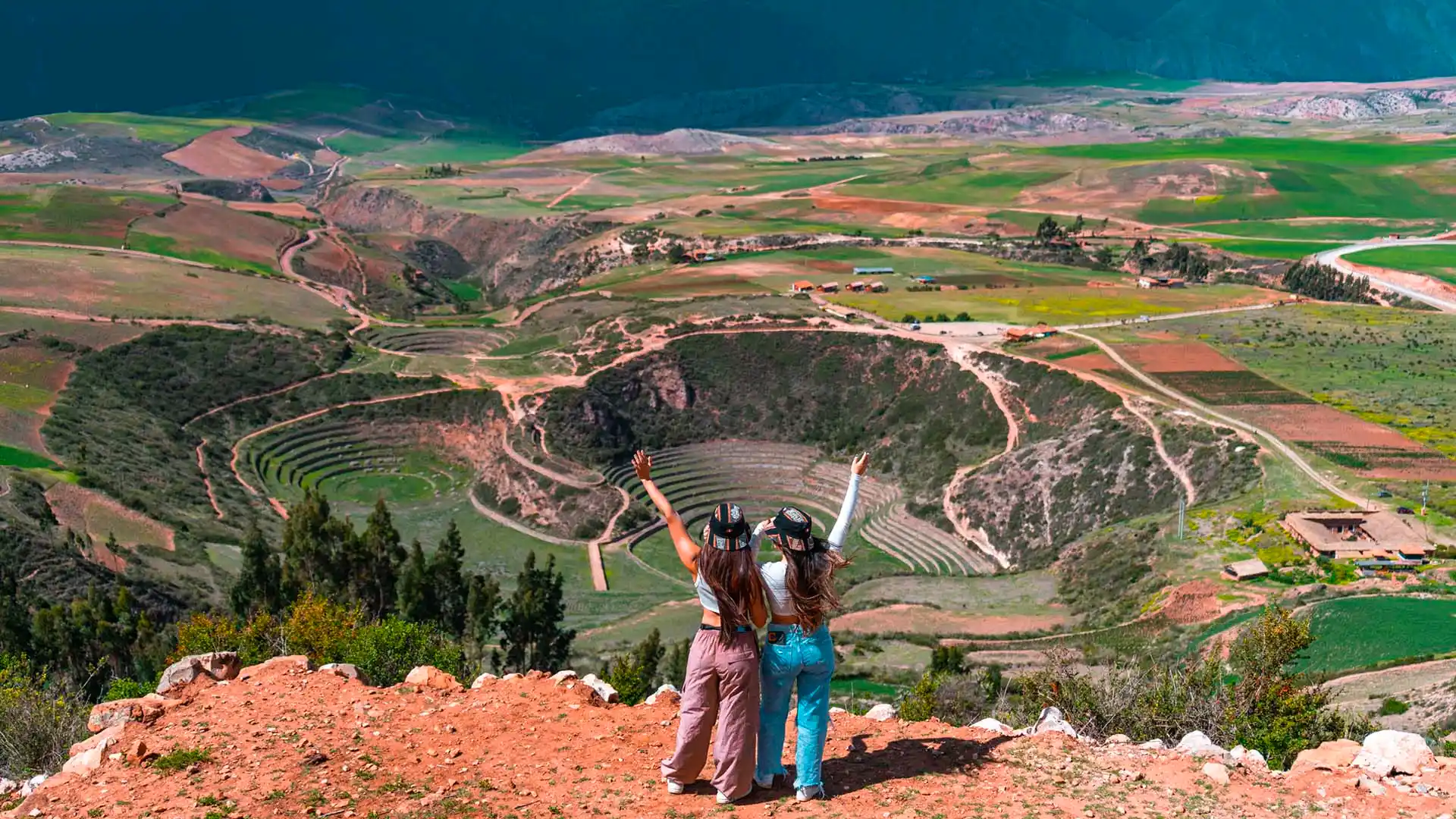 The tour continues to Maras and its famous salt ponds. Bright pools cover the hillside and create an impressive pattern. Moray appears nearby with circular terraces and unique agricultural designs.