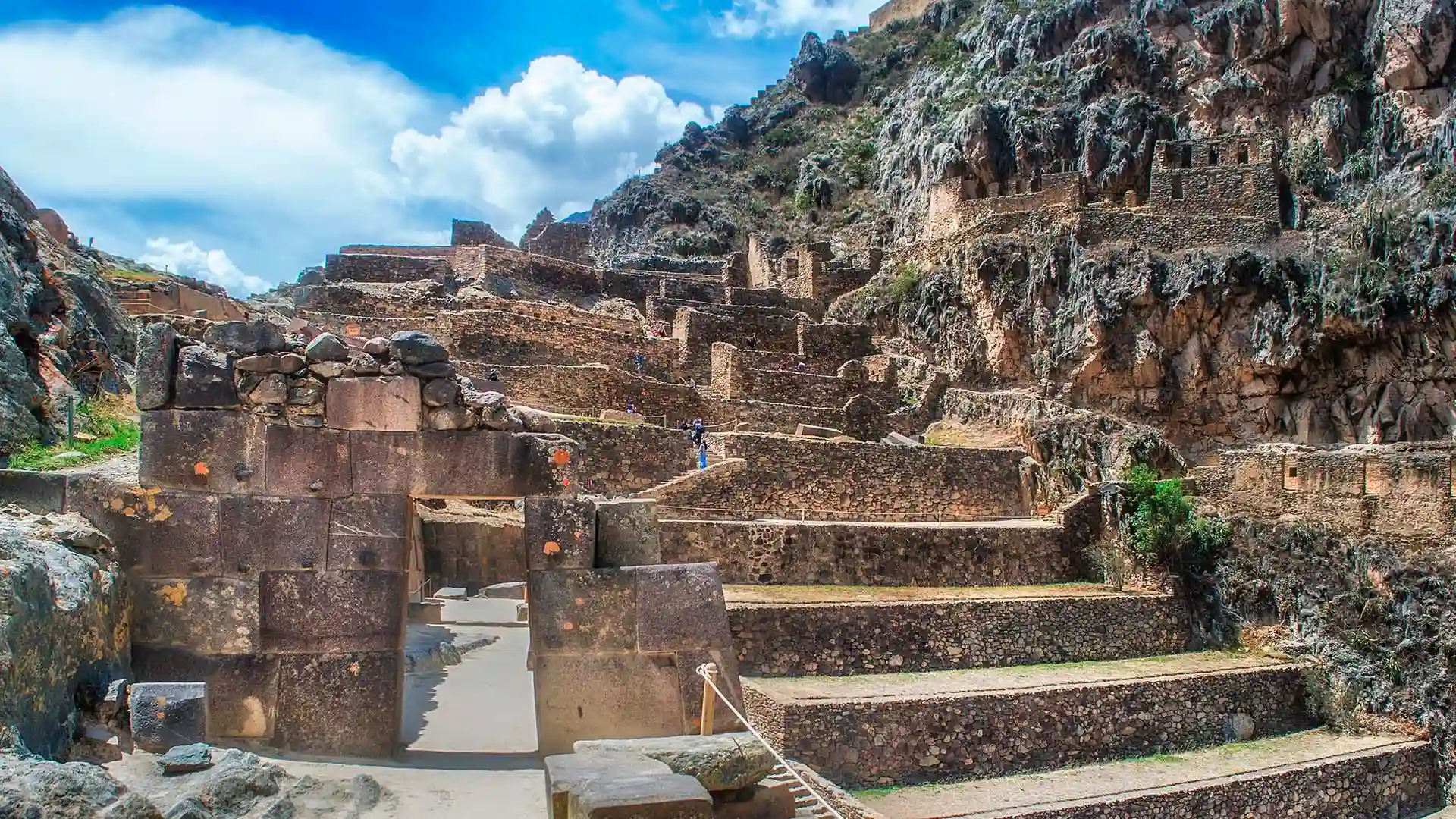 After lunch in Urubamba, the tour reaches Ollantaytambo. Its stone streets and high terraces show the strength of Inca planning. Depending on the schedule, we will board the Expedition or Voyager train to Aguas Calientes.